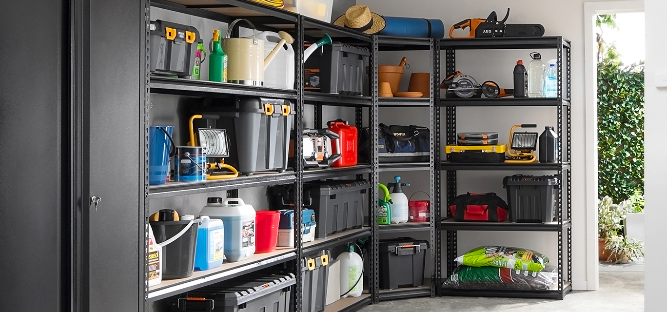 重量物にも耐える、抜群の安定感。 1段あたりの耐荷重は625kg。プロの現場でも使えるほど頑丈な作りで、重い機材や工具を載せても安定感があります。幅150cm・182cmの選べる2サイズ。その圧倒的な収納力とタフな構造でガレージの主役として使い続けられます。